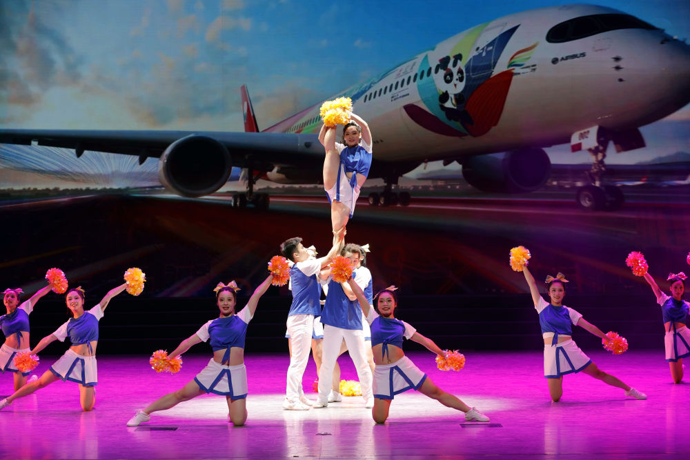 成都大学的学生表演《多彩瞬间》。新华社记者 沈伯韩 摄