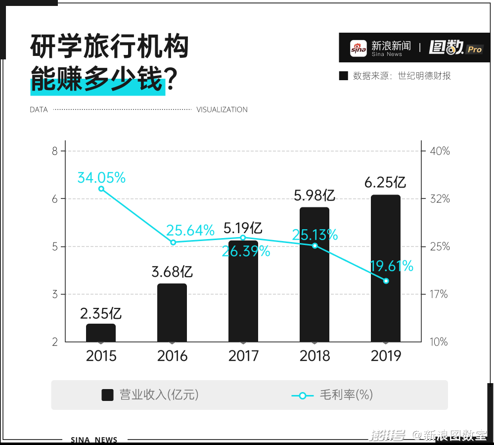 从研学旅行机构世纪明德在2015到2019年的财报数据同样可以看出,其营业收入逐年上涨,且毛利率较高。研学可以说的上是一个好生意。