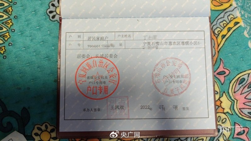 丁君:2018年身份证丢了,补身份证在派出所一查补不了,他说你这个户口已经在石嘴山了。这边不能办,要到石嘴山补户口本,初次申领,必须到石嘴山。