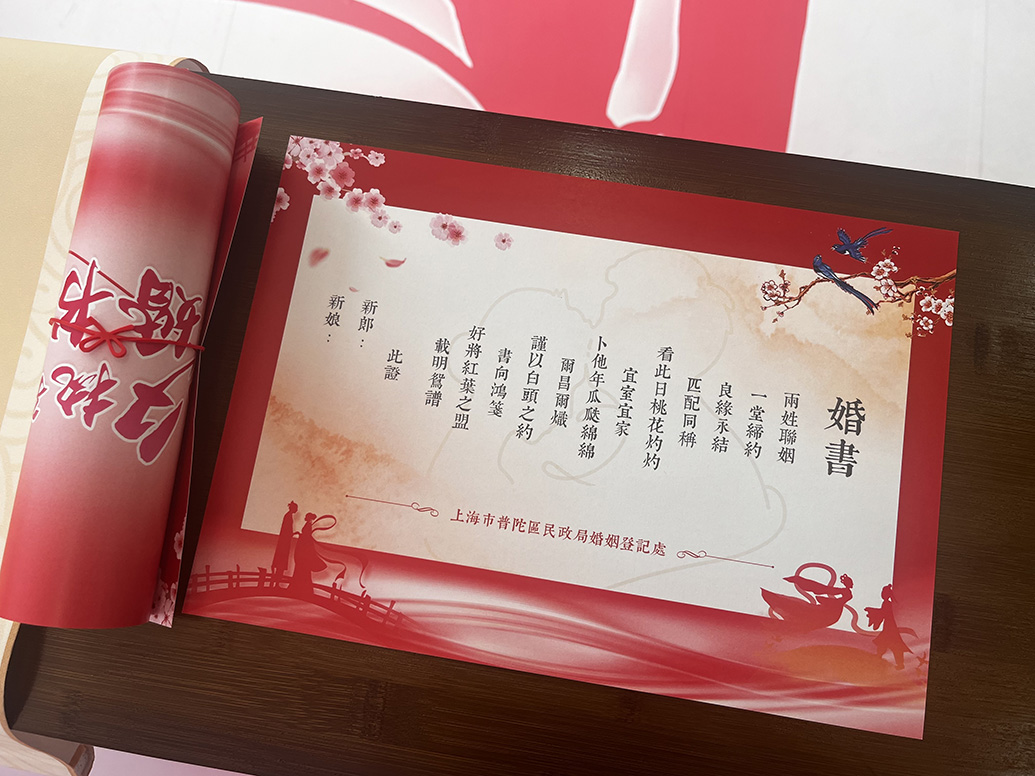 上海普陀婚登中心特别推出的传统婚书。本文图均为澎湃新闻记者 邹佳雯 图(除署名外)