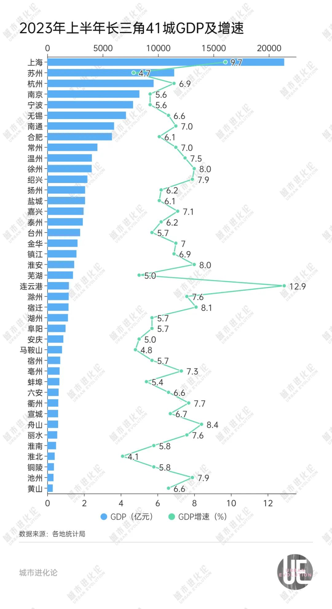 近日,长三角三省一市经济半年报陆续出炉。41个地级及以上城市中,35城GDP增速跑赢5.5%的全国水平,其中,连云港以12.9%的增速一骑绝尘,成为上半年跑出的一匹“黑马”。