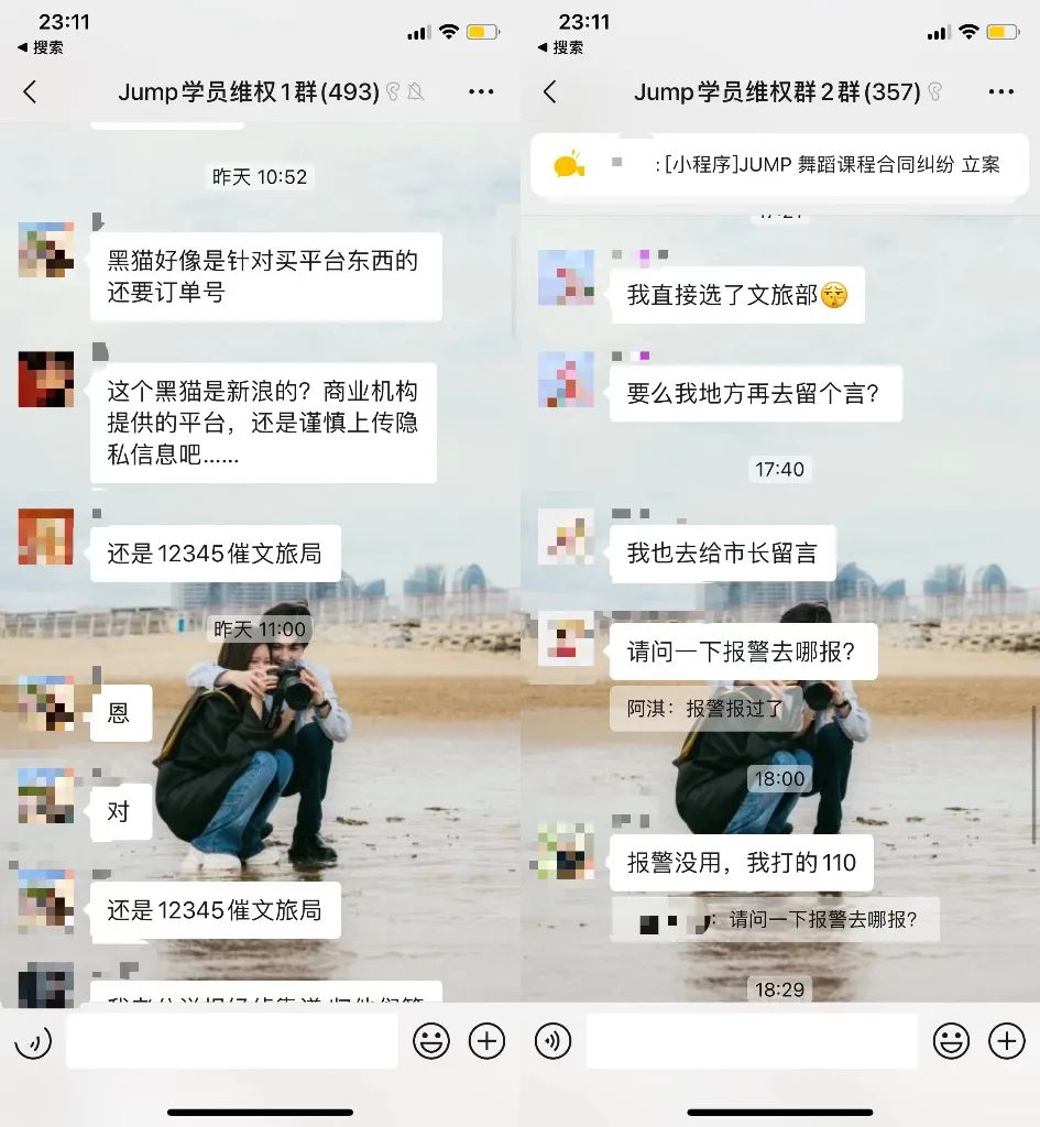 目前学员们自发拉了两个维权群,共有800多位学员,都在积极地寻找维权途径。两个月前和小伙伴通过618大促办卡的何女士说,办卡时的价格算是全上海课时单价最便宜的,本以为找到了性价比高的舞蹈工作室,没想到成为了消费陷阱:“我觉得他就是想要卷一波(钱),然后就走了。我们现在投诉无门,感觉就像苍蝇一样到处盯,能找到什么(维权)方式就找什么方式,把所有方式都选一遍,然后就想要把这个老板找出来。”