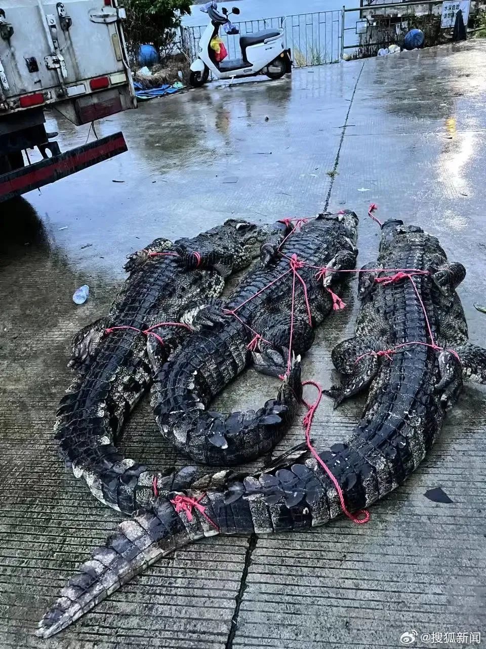9月11日,网传视频称广东茂名一个养殖场有70多条鳄鱼因为暴雨出逃。
