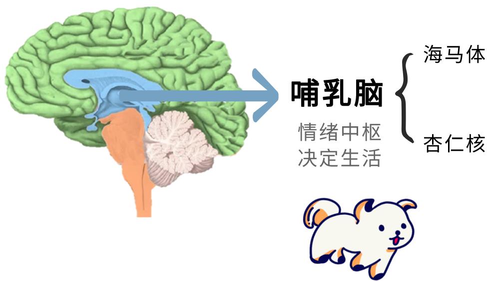 像家里的宠物就有这层大脑,它们虽然没有理性,但有情绪,会开心、难过、害怕。