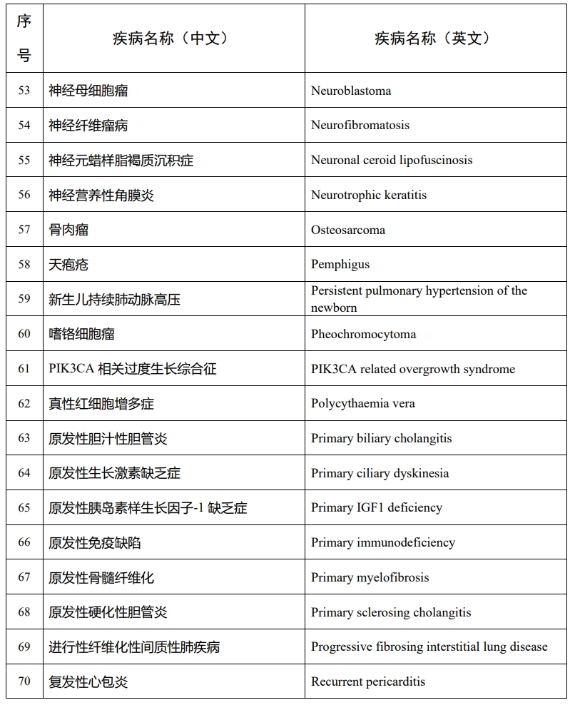 澎湃新闻记者注意到,《第二批罕见病目录》中,软骨发育不全、先天性胆道闭锁、胶质母细胞瘤、黑色素瘤、发作性睡病等均被纳入。