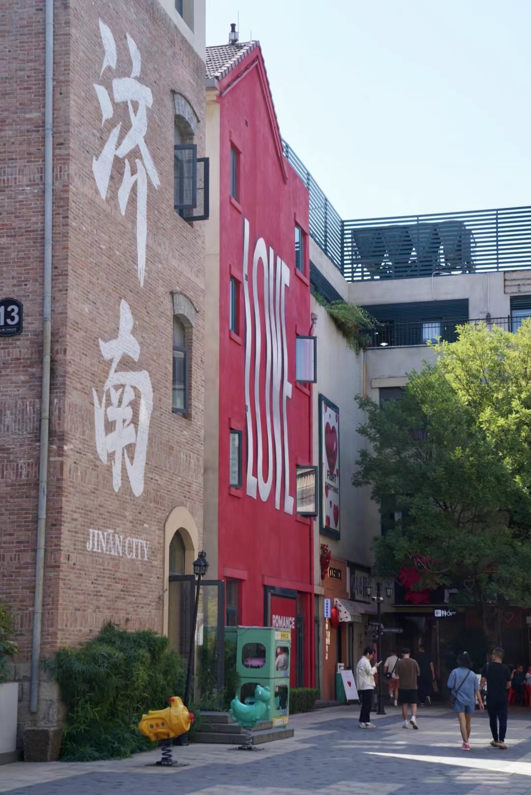 路墙上巨大的“济南”字样,风格独特的咖啡店,路口处的爱心红绿灯,还有找好光线拍照的小姐妹……虽是老商埠,但是这里的气质却很摩登。