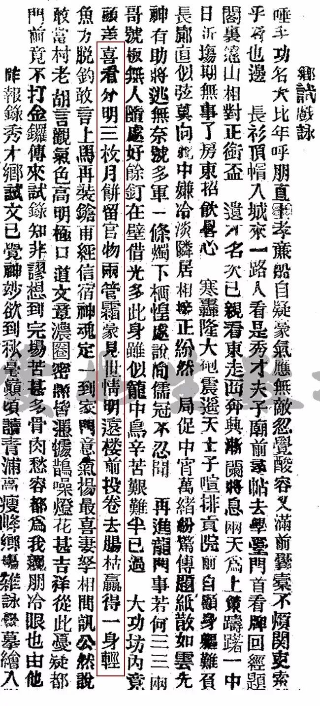 《申报》1873年10月6日的这篇内容也是沪上报纸较早出现“月饼”用词的文章1875年9月4日,《申报》中有一篇名为“乡试戏咏”的文章,作者“青浦高瘦峰”描述了苦读求学中的各种经历,有感而发。其中也提到中秋时节看到月饼,“见物思迁”的感叹。