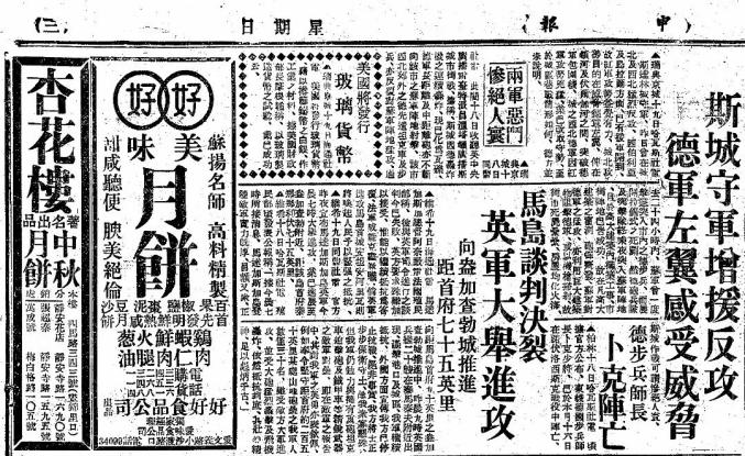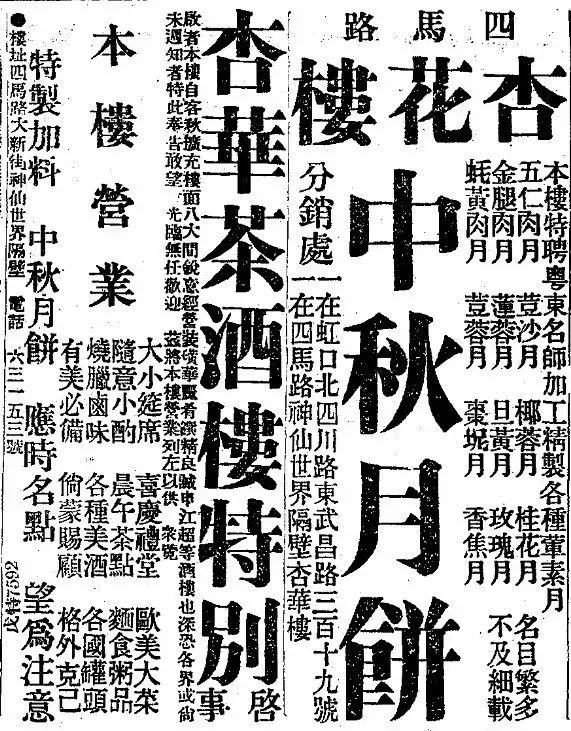 1930年9月23日,《申报》刊登的杏花楼月饼广告