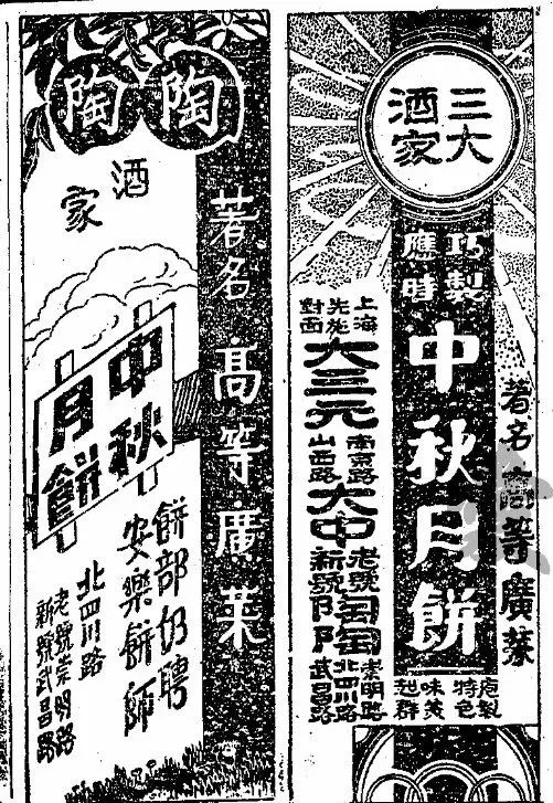 1930年9月23日,《申报》刊登的大三元和陶陶酒家的月饼广告