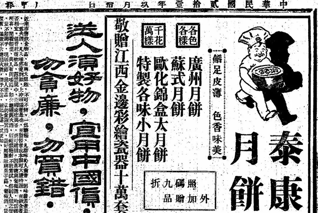 1932年9月10日,《申报》刊登的泰康月饼广告