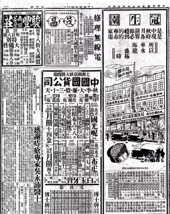 1926年9月17日,《申报》 刊登的冠生园月饼广告