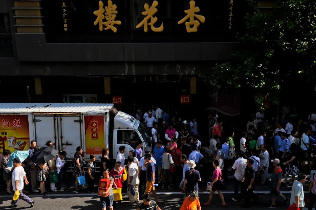 2013年中秋前夕,福州路杏花楼总店门口排队领取月饼的市民图片摄影 | 陈龙