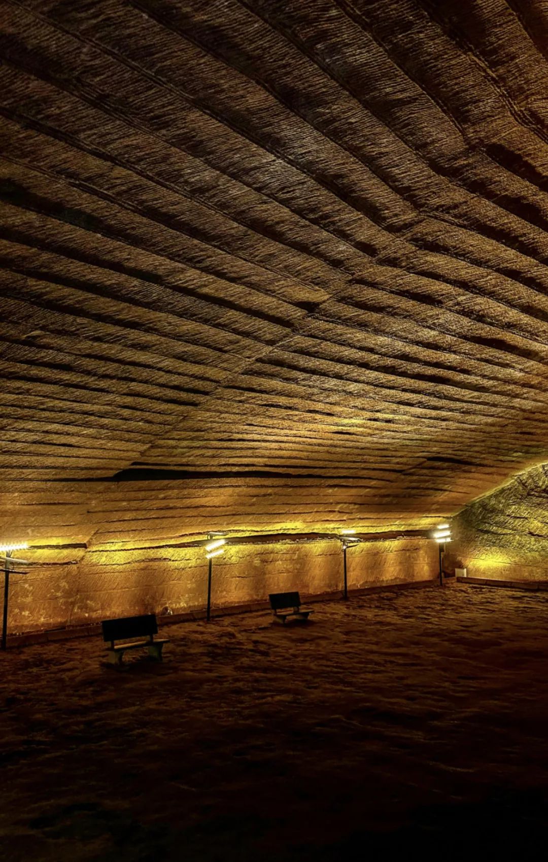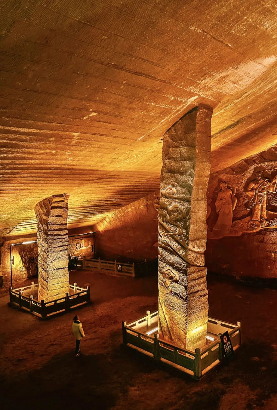 ©️我是唐很甜这座在地底沉睡千年的石窟,靠几根大石柱支撑着,整个石窟呈北斗七星的形状,还有洞顶和洞壁上凿刻的斜纹,真的不得不感叹古人的建造智慧。