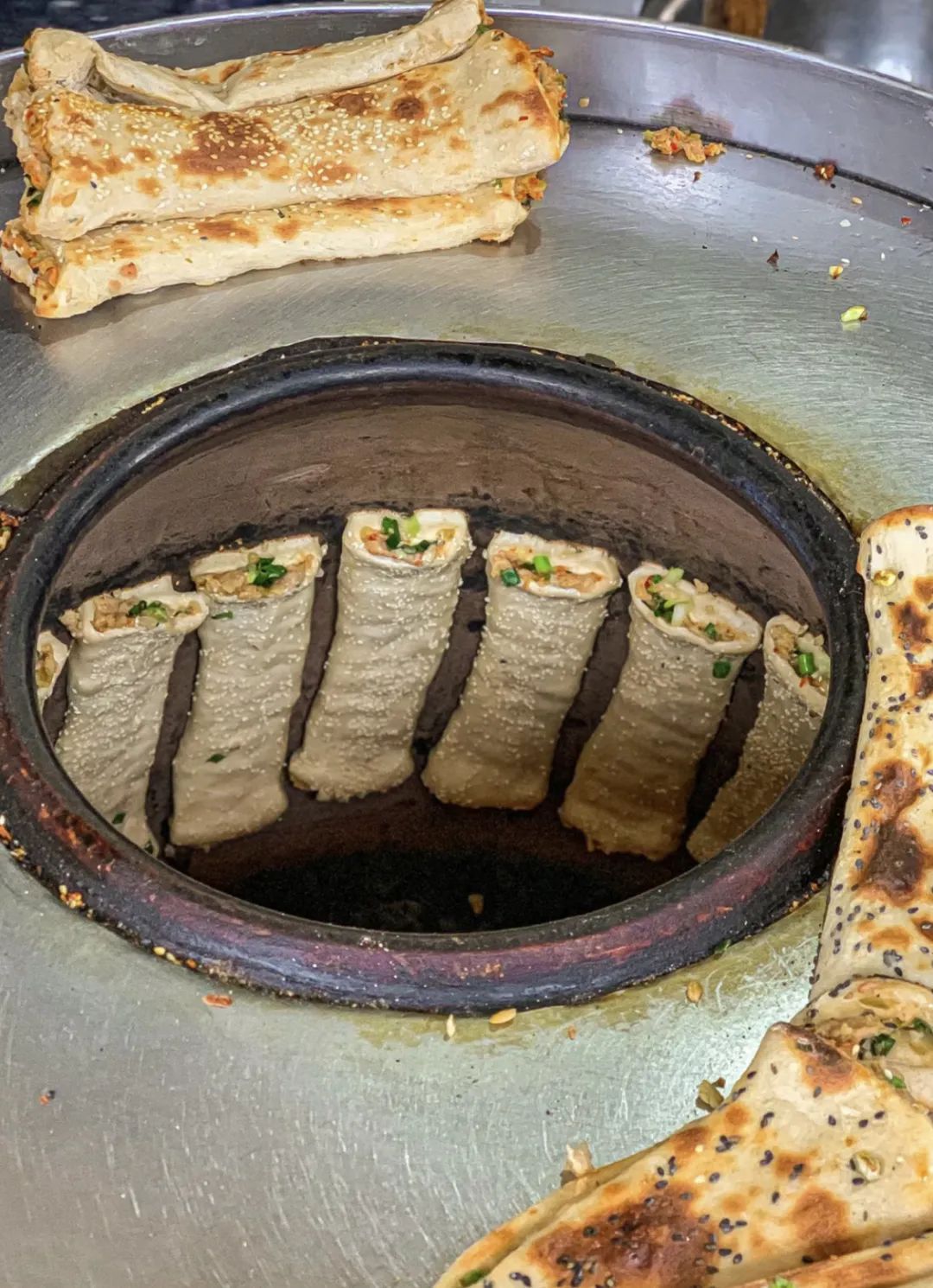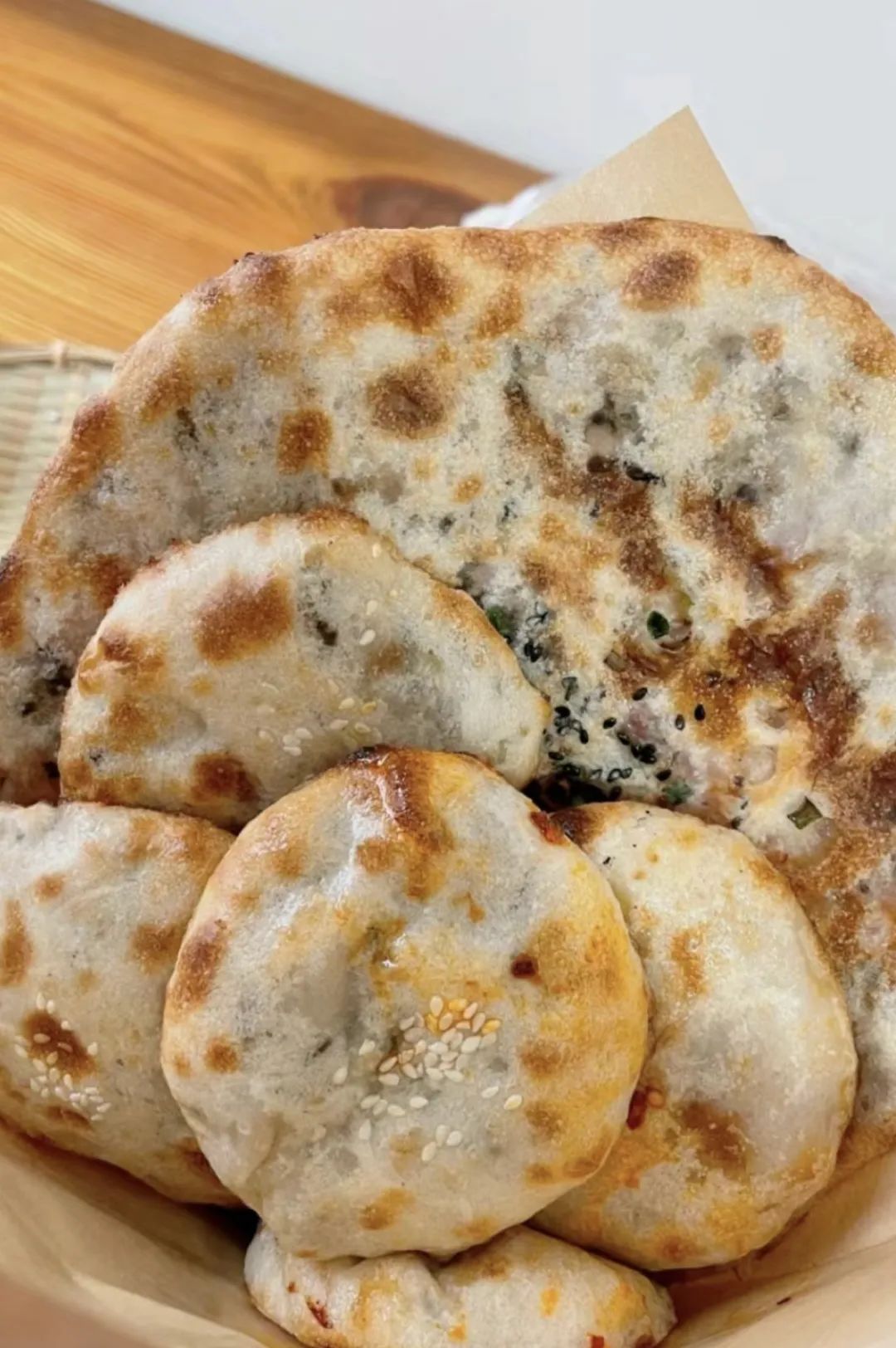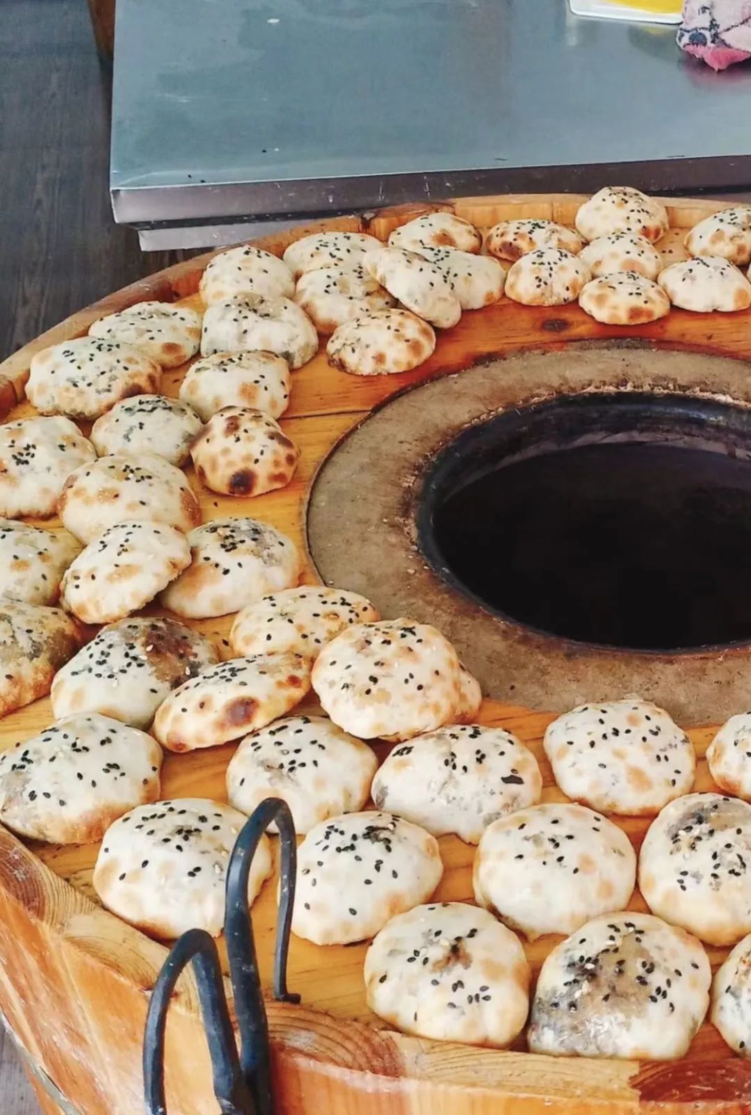 本地的烤饼有大有小,最经典的就是葱油饼,把葱花直接包裹进去烤,刚出炉的时候,葱香四溢。