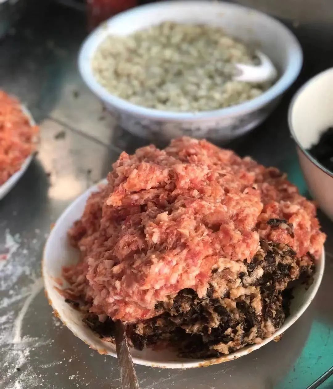 当然也可以加馅儿,细腻的肉沫混着梅干菜或者榨菜,咬开后,肉香与菜香交缠,满嘴生香,是几代衢州人的早餐首选。