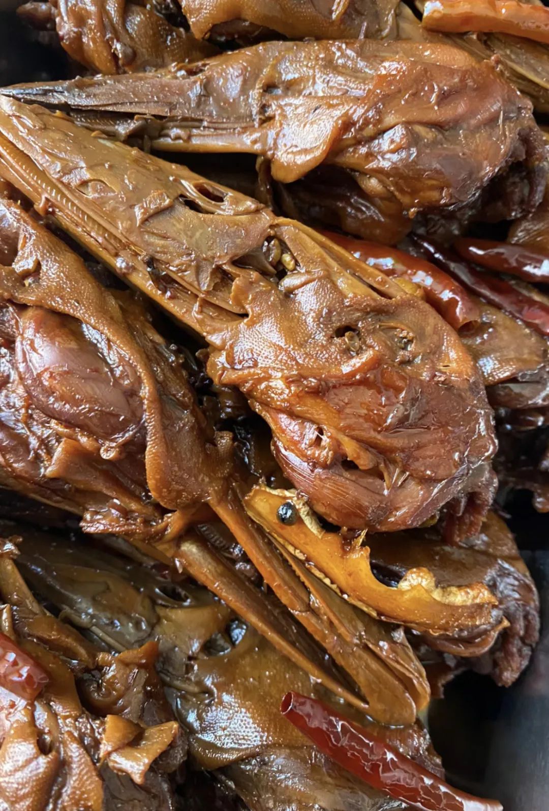 尤其是鸭头,深得衢州人民的挚爱,妥妥的宵夜必点,卤得耙软后,卤汁也进入鸭头的每一寸肌理中,入口先唆卤味,再来“拆件”,配点夏日的小酒,就是YYDS。