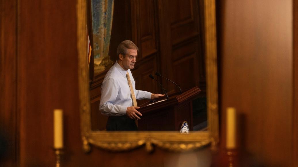 10月20日,在美国华盛顿国会,共和党议员吉姆·乔丹出席记者会。新华社 图