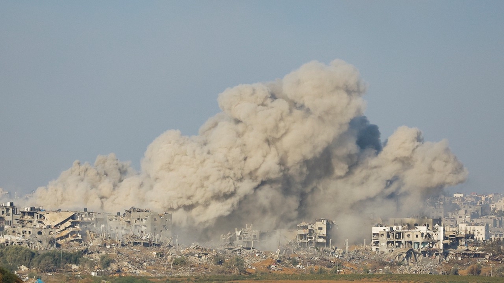 当地时间2023年11月15日,巴以冲突持续,加沙遭以军空袭,冒出滚滚浓烟。