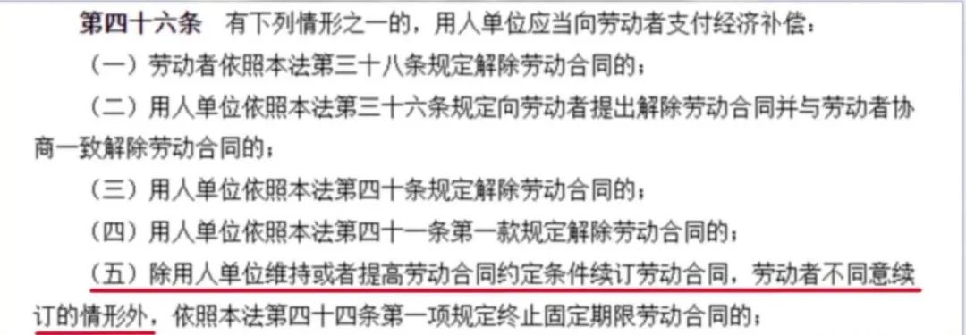 对于仲裁的结果,专家表示《劳动合同法》第46条规定,有下列情形的,用人单位应当向劳动者支付经济补偿。其中,第五项规定,除用人单位维持或者提高劳动合同约定条件续订劳动合同,劳动者不同意续订的情形外。