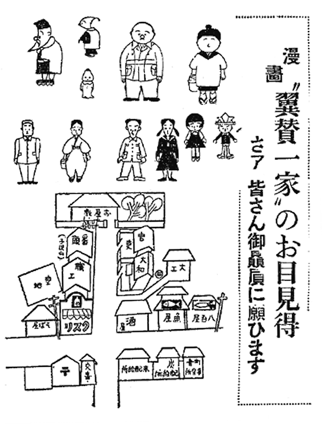 日本报纸后来有一个特征,经常连载四格漫画。漫画大概的内容都是以小区、街区的日常生活为中心,以街区中的一个家庭为核心展开。大家会觉得这不是自然而然的事情吗?但实际上,日本报纸以一个街区和家庭为主角创作的起源就是《翼赞一家》,这一直延续到战后至今。在此之前,日本报纸的连载漫画有各种各样的主题,棒球、侦探、科幻不一而足。对于日本人而言,每天早上拿到报纸看到登载着关于一个街区,一个家庭的故事,这就是战后的日常生活,但它的起源其实在战前和战时。
