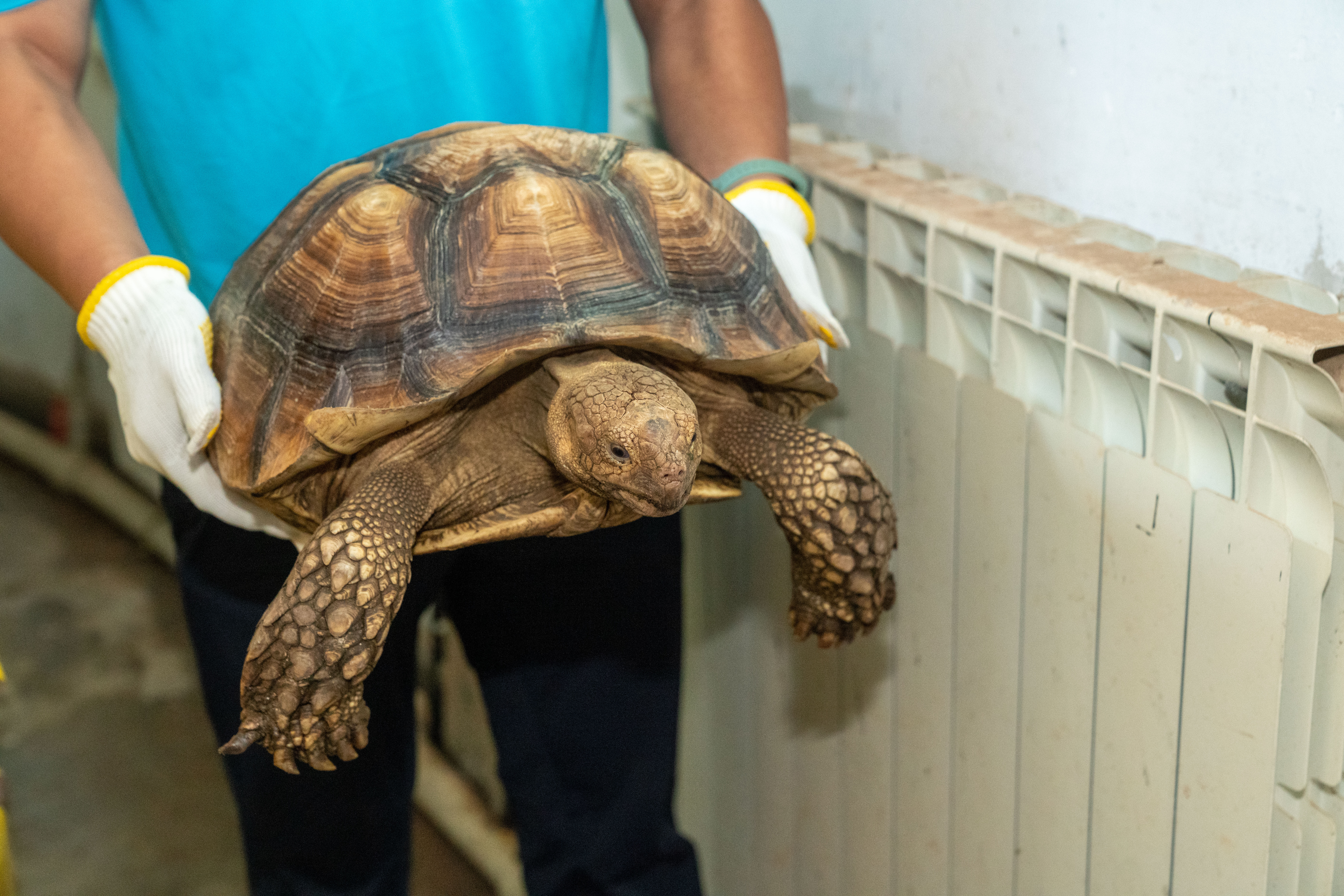 查获的苏卡达陆龟。本文图片均为 上海市绿化市容局 图