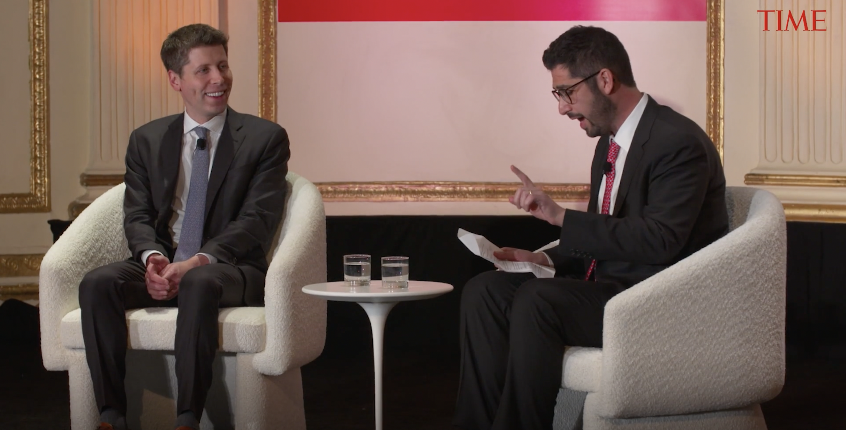 人工智能开发机构OpenAI首席执行官山姆·奥特曼(左)12月12日参加《时代》杂志“时代的一年”活动。