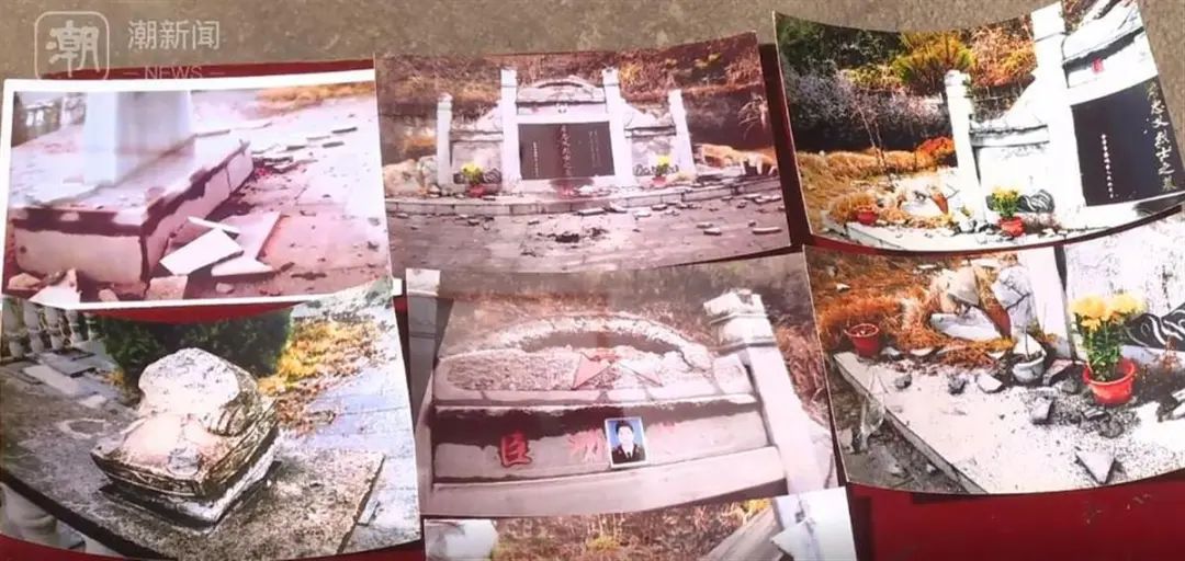 烈士墓被破坏现场的照片 (图源:潮新闻)