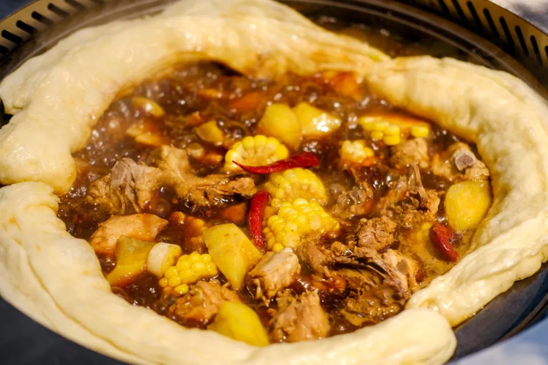 排骨、豆角、土豆、南瓜、玉米、粉条……人间百味,铁锅之大,全给你炖下。