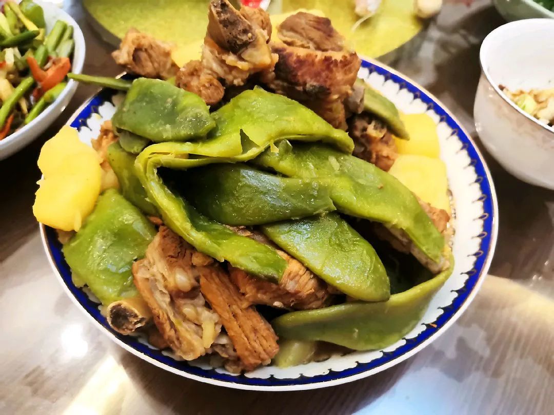 豆角是精髓 | 图片来自豆果美食@喜欢动手的正经吃货主食不用选米饭,就选和它一起蒸熟的小花卷,或者黄黄的玉米饼贴子,蘸汤吃,北方面食的粗犷和铁锅炖,绝配!