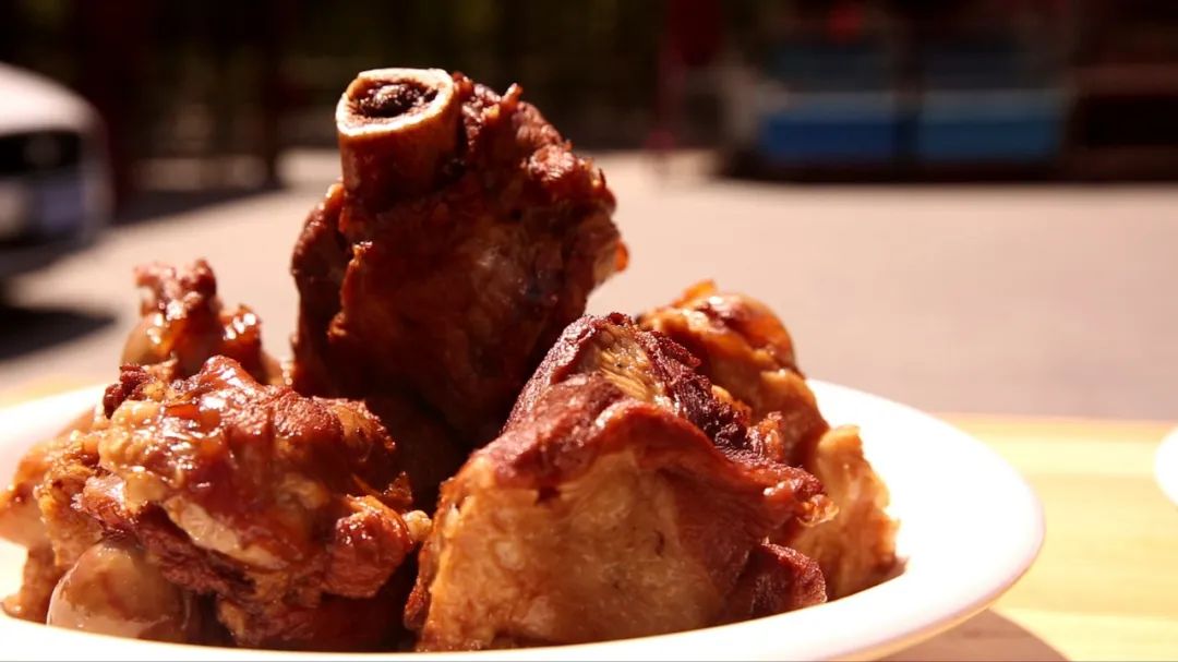 北京有羊蝎子,东北有酱骨头,都是戴上手套,咔咔就啃的硬菜,那叫一个过瘾。有的店还会给你一个小吸管,拿来吸骨髓,整个骨香浓郁,食髓知味。