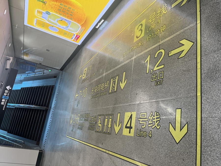 对此,有乘客建议,换乘站点的卫生间标识指引可以更加全面、显著,“可以在悬挂的换乘线路指示牌旁边,加一个卫生间的小标识,会更加清晰明了。”