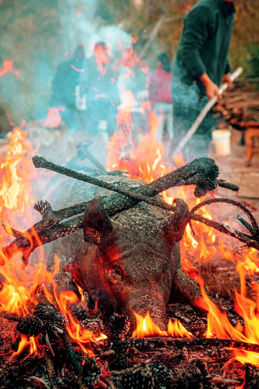 到了云南,年猪的味道不只有想象力,还有一些“野性”。在昆明的禄劝彝族苗族自治县,这里的杀猪菜多了一重视觉震撼。与其他地方不同,这里杀年猪会先把整只猪放在稻草里烤,随后再开膛分食,切好的皮肉蘸上调料即可直接食用,火烧后的生皮嫩脆有嚼劲,云南独一份。