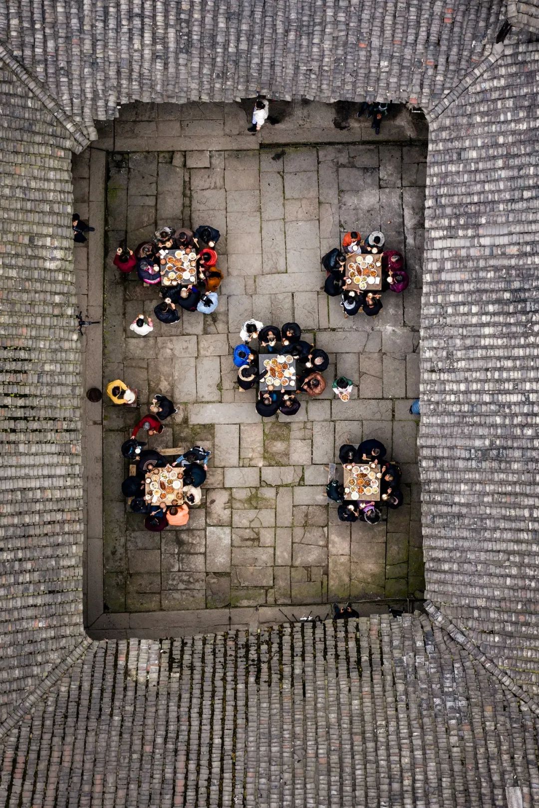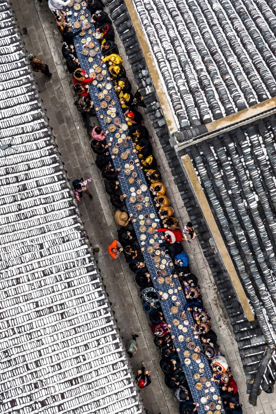 湖北宣恩长潭侗乡古寨农家杀年猪后的长桌宴。