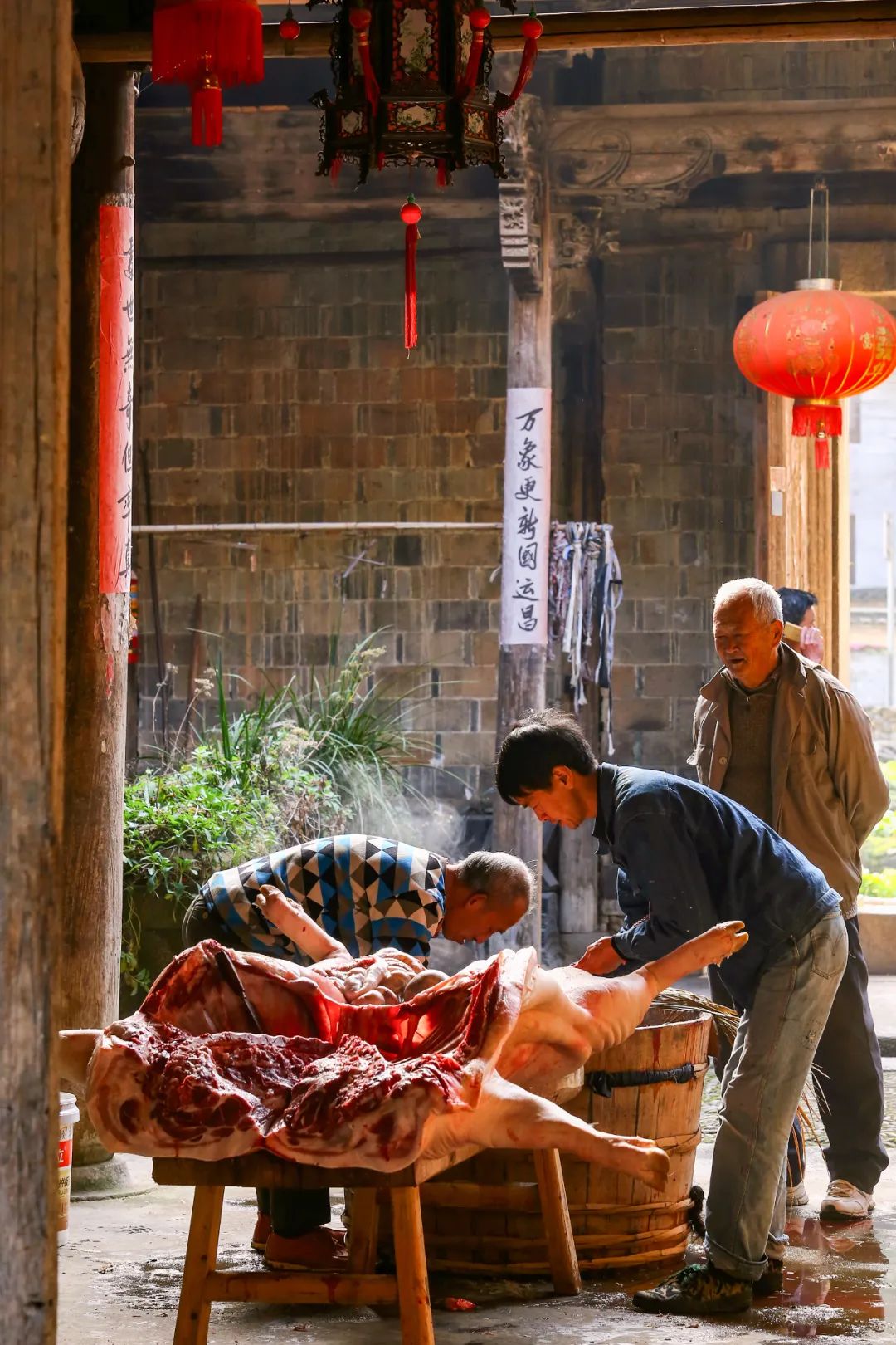 浙江石仓古村杀年猪,杀年猪也意味着团圆的开始。