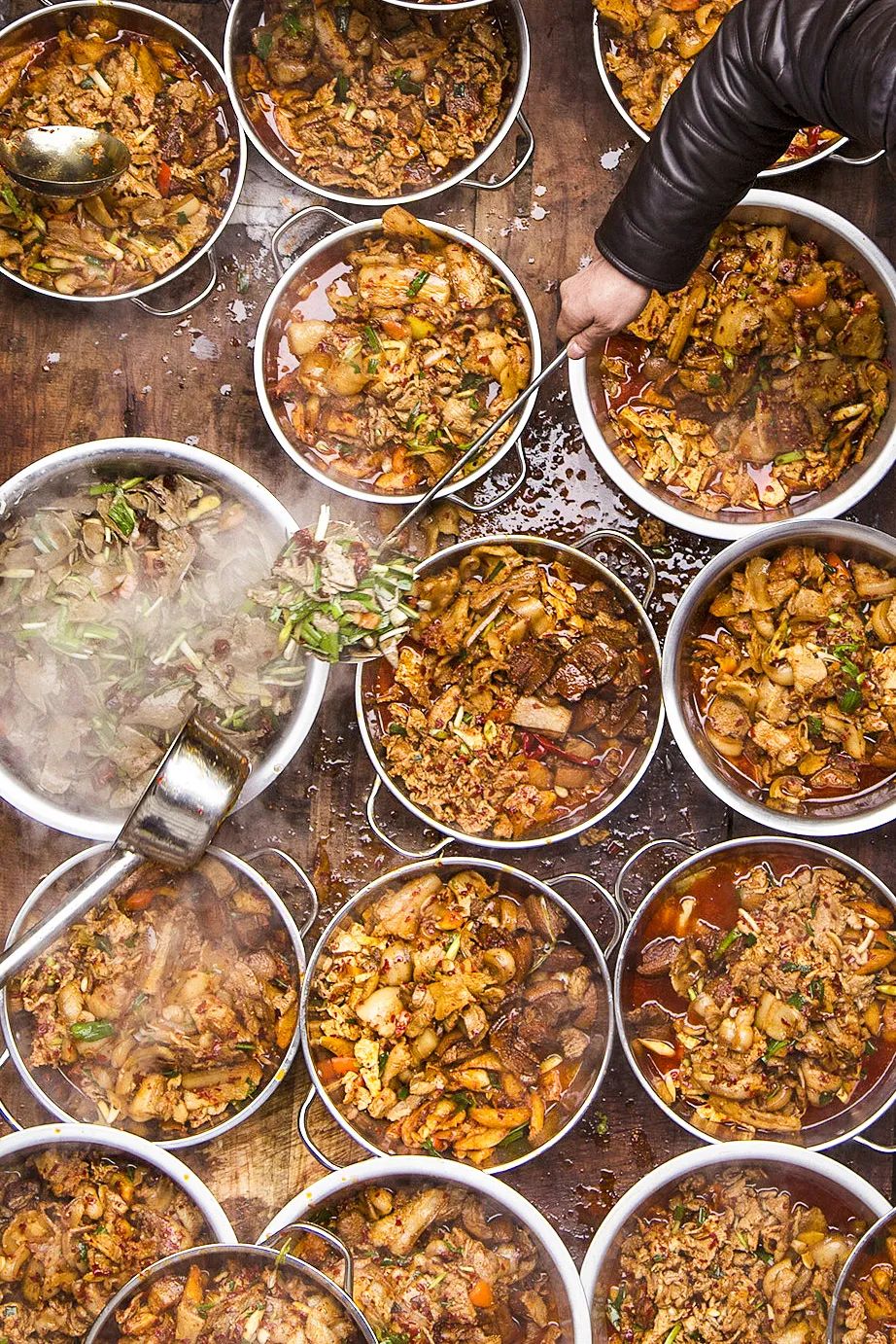 当然还有东北,全村齐力杀猪后的一锅酸菜白肉炖血肠,热气腾腾,吃完这锅,只等过年。东北人通常把这顿饭叫做杀猪菜。从广义来说,这种“杀猪菜”在中国分布极其广泛、形式也非常丰富多变,猪与过年,这两样对中国人来说最重要的事物,碰撞出了这种硬实、饱满,承载着强烈情感的食物形式——杀猪菜。从这个维度来说,它堪称“中国第一硬菜”!