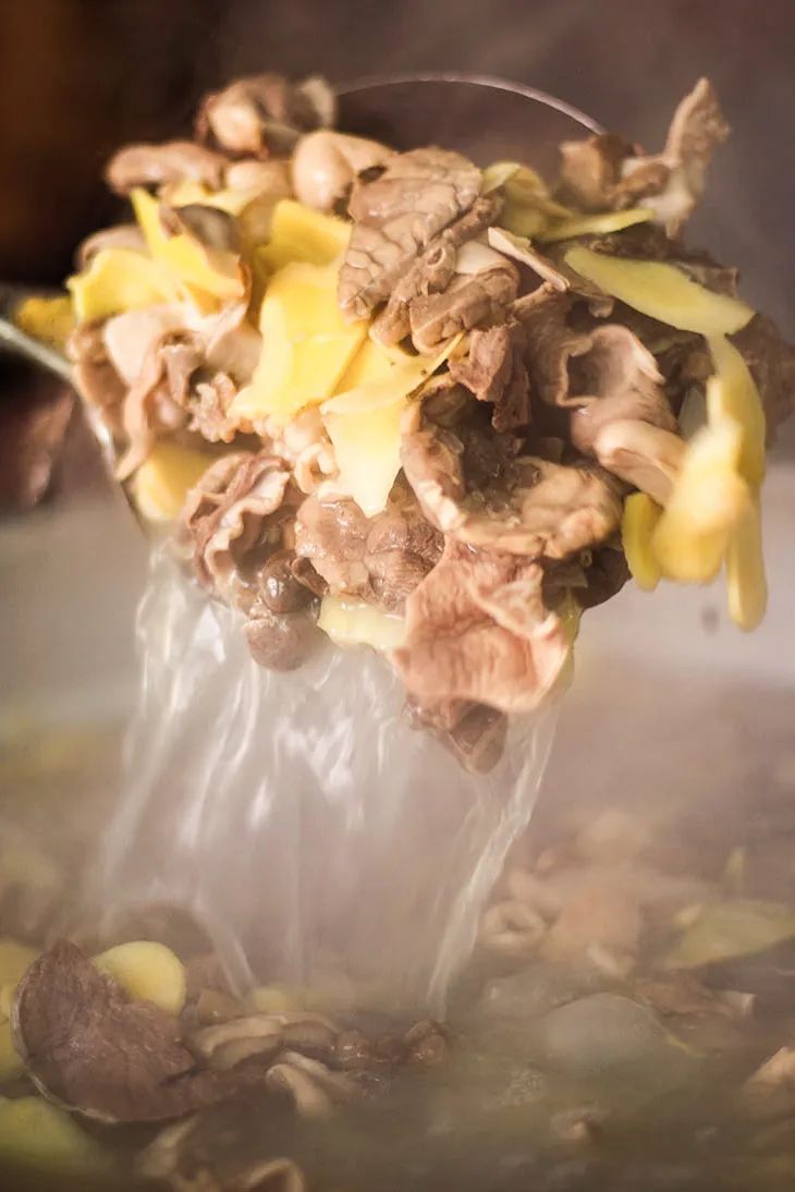 如今全国各地已经开始陆续返乡,川渝人回家的第一场社交聚会,就是吃刨猪汤。川渝各地的刨猪汤略有不同,但核心都要有一碗用粉肠、猪肝、血旺、小肚等猪内脏炖煮的热气腾腾的汤,其他主菜则有粉蒸肉、回锅肉、炒猪肝、酸菜滑肉面块等,还有更讲究的地方会要求七大碗八大碟,更显隆重。