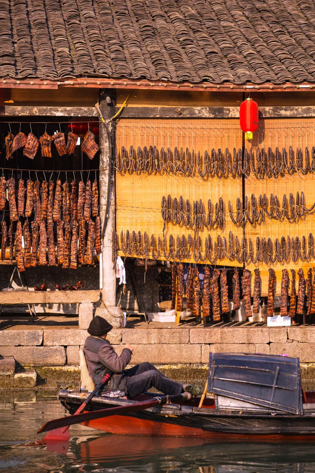 先看真正意义上的江南,浙江绍兴。绍兴的酱油在清代就开始闻名,所以对于绍兴人来说,一村人集体杀猪吃猪只是绍兴杀年猪活动的一部分,重头戏其实是用年猪做酱货。绍兴酱油配上秘方熬制出酱料,把处理好的香肠、猪头、猪耳、猪蹄浸在酱料几天,再挑一个阳光高照的日子,齐齐挂在屋檐下,静待新年的到来。