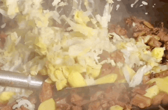 在陕北,人们也会将精心喂养一年的猪与腌渍的酸白菜同炖,唯一不同的是,陕北人还会加上他们钟爱的食材洋芋。陕北的黄土地疏松,却盛产马铃薯,在过去物质匮乏年代,许多陕北人就靠着一土窑的洋芋度过了漫长的冬季。而在如今,在年前隆重的杀猪菜里,也定然少不了它。