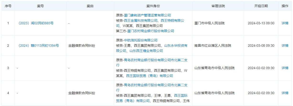 此外,天眼查APP显示,西王集团还涉及多起合同纠纷,两起案件将于3月开庭。