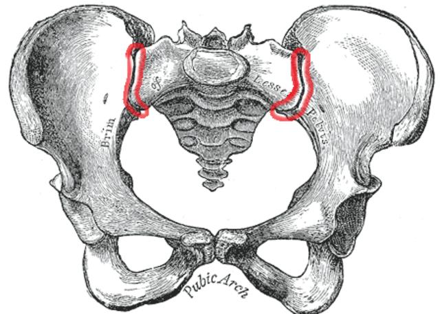 图片来源:wiki commons骶髂关节是由我们的尾椎骨和和两侧的髂骨形成的连接关节,就是上图中红色圈出的位置。