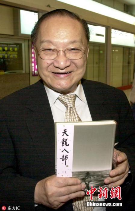 金庸拿着一本新出版的《天龙八部》小说。Udndata 摄 图片来源:东方IC