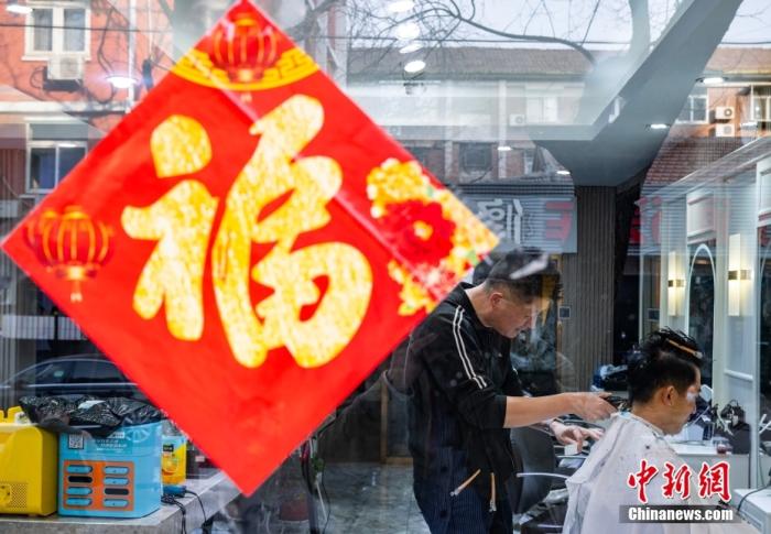 资料图:市民在北京市西城区一家发廊理发,期许吉祥兆头。中新社记者 侯宇 摄