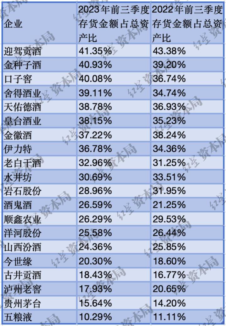 迎驾贡酒存货占总资产四成,茅五泸占比最小