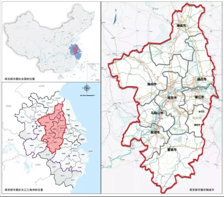 2021年2月,南京都市圈发展规划获国家发改委正式批复,成为中国首个跨省都市圈,覆盖苏皖两省多个城市,包括南京、镇江、扬州、淮安、马鞍山、滁州、芜湖、宣城八市,以及溧阳市和常州市金坛区。
