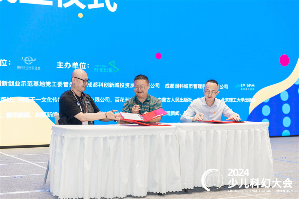 获奖作家中不乏新人。第四届新星金奖得主胡晓霞、第五届新星金奖得主何明瀚都是在2020年以后才开始发表科幻作品的。2024少儿科幻大会还集中展示了2023至2024年少儿科幻纸质图书出版成果。北京少年儿童出版社、浙江少年儿童出版社、长江少年儿童出版社、少年儿童出版社等相关少儿图书出版的出版社及文化公司的社长、总编辑、董事长悉数参会,展示了这些出版单位与国际少儿科幻协会、少儿科幻星云奖组委会合作出版的19套100余部少儿科幻图书,以及签署新的星云系列少儿科幻图书合作出版协议,共同推动中国少儿科幻事业的持续发展。