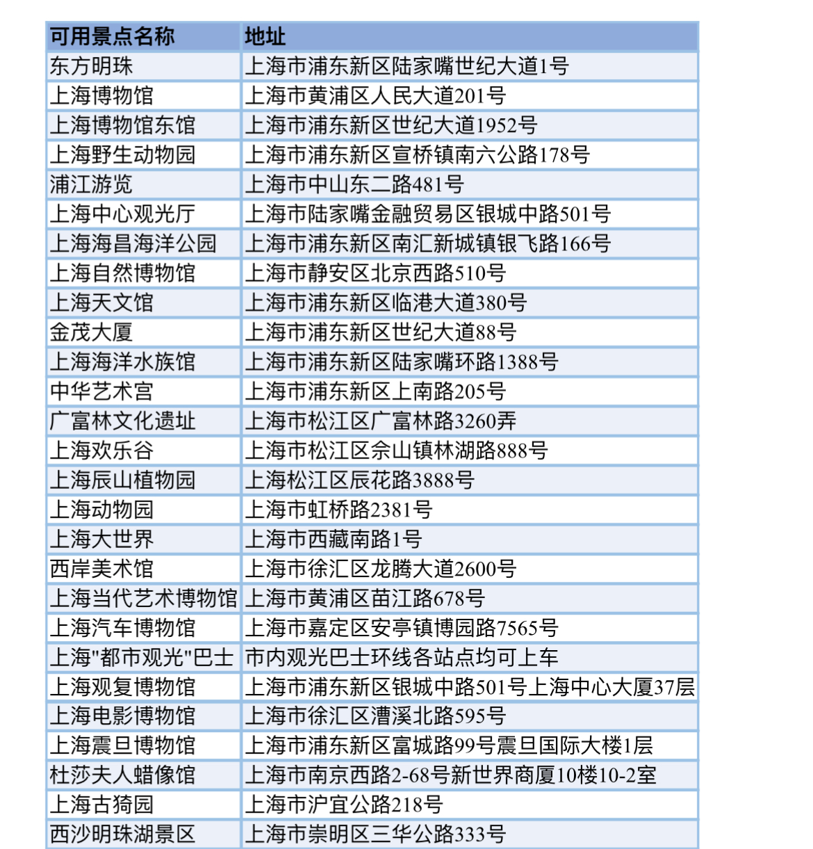 “Shanghai Pass”产品可刷卡购票或消费的景点 受访者供图