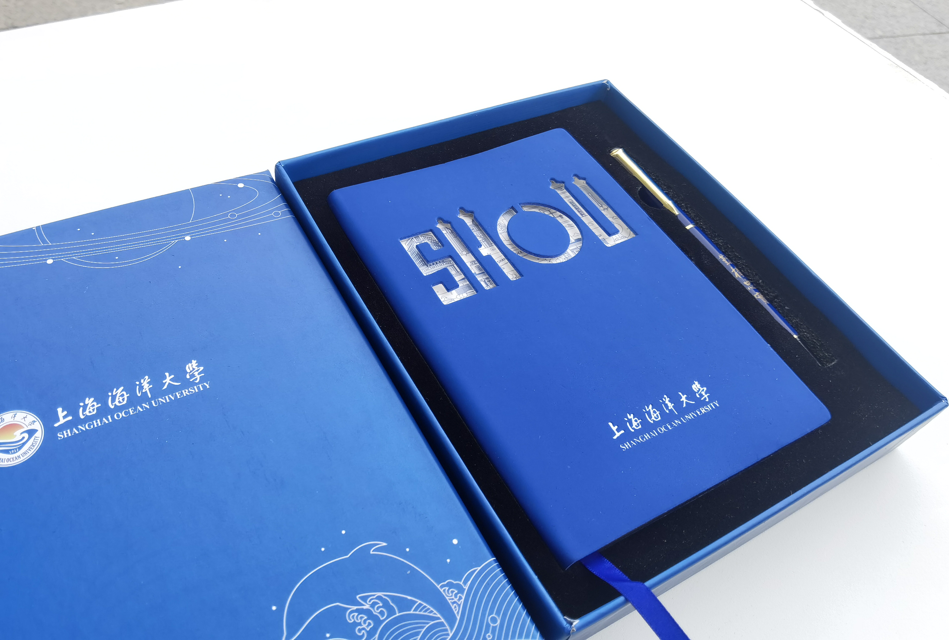 除了免费毕业餐,上海海洋大学还送出了毕业生纪念品。笔记本套装设计精美,礼盒下方是鱼游大海,上方是璀璨星空,象征着学子们此去星辰大海,远赴理想之乡。笔记本内部是海大建筑的缩影,承载着思想、知识和灵感。签字笔上刻着上海海洋大学的校训“勤朴忠实”,寄托了母校对学子们永记当下,书写未来的美好祝愿。