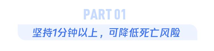 分析后发现:● 与每次持续时间少于1分钟的人相比,每次持续1~3分钟的人死亡风险降低34%,每次持续3~5分钟的人死亡风险降低44%,而每次持续5~10分钟的人死亡风险则降低52%!