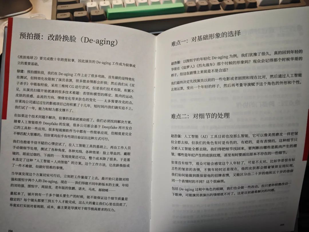 说实话,AI在影视中的运用也不是第一次。相对近的就有《流浪地球2》,刘德华和吴京在影片中年轻态的样貌就是使用了AI,也就是郭帆常说的,AI增龄减龄。