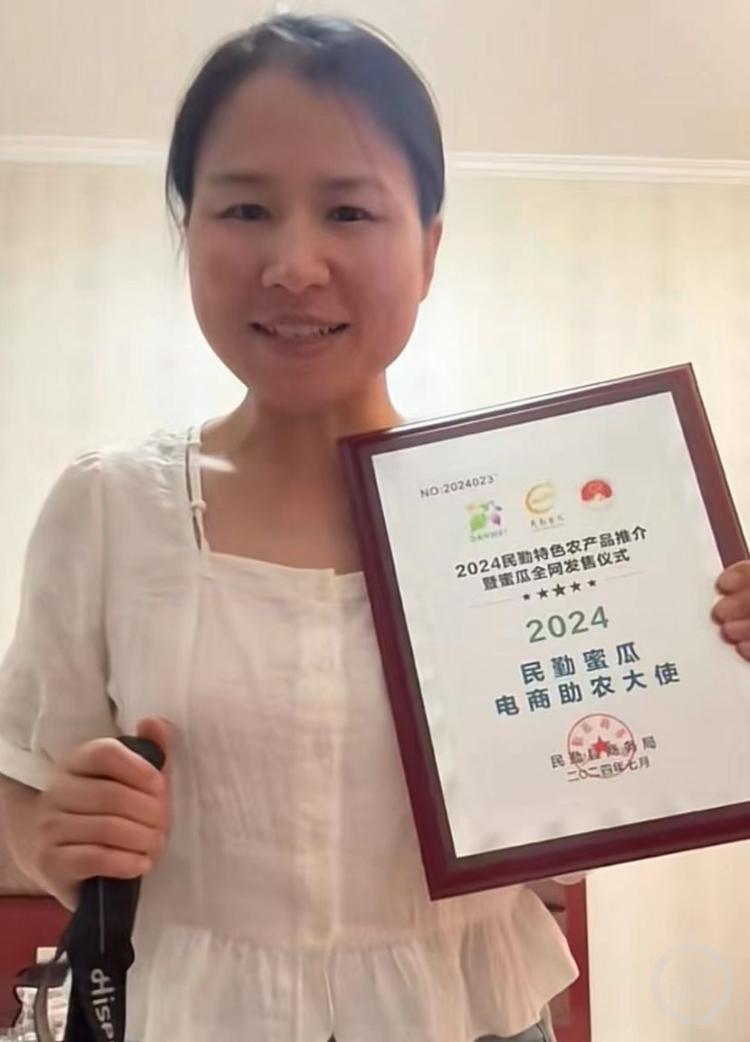 上游新闻记者从相关视频中看到,经过努力,小滕获得了由民勤县商务局颁发的“2024民勤蜜瓜电商助农大使”奖状。小滕说,自己非常感谢当地政府以及网友们的支持。她希望今后能通过自己的力量,去做一些更有意义的事情。